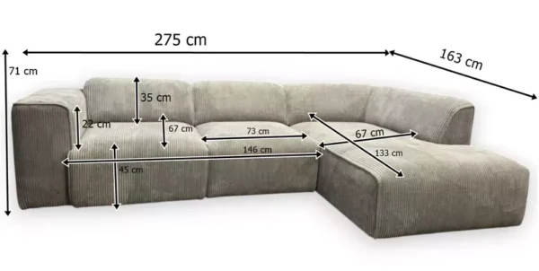 • Dybde (chaiselong): 163 cm