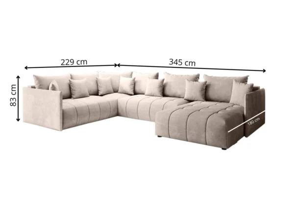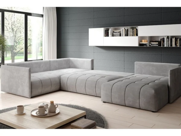 Stor, moderne og funktionel U-sovesofa – ideel til både hverdagsbrug og overnattende gæster.